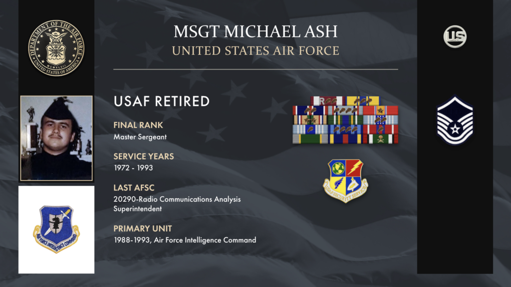 The following Reflection represents MSgt Michael Ash’s legacy of their military service from 1972 to 1993. If you are a Veteran, consider preserving a record of your own military service, including your memories and photographs, on Togetherweserved.com (TWS), the leading archive of living military history. The Service Reflections is an easy-to-complete self-interview, located on your TWS Military Service Page, which enables you to remember key people and events from your military service and the impact they made on your life.
