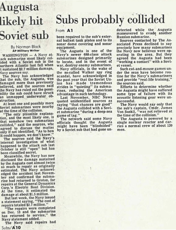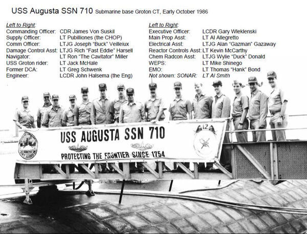 January – April 1985: Completed Navy Submarine School in Groton, CT. I was initially notified of my next duty assignment aboard USS Albuquerque (SSN 706). However, when an officer on a different submarine was unable to return to duty following a car accident, I was assigned to USS Augusta (SSN 710) as his replacement.