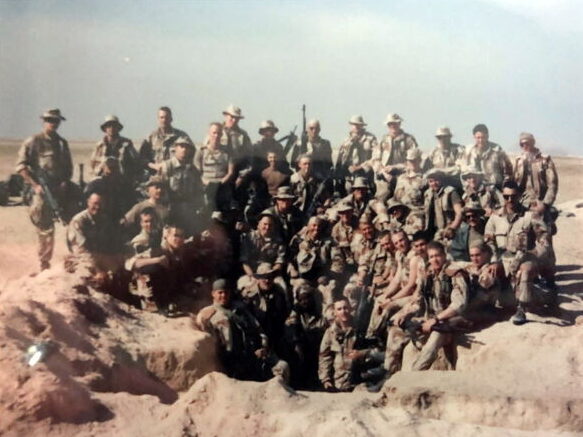 We had a Marine from Bravo Company 1/25 who was almost killed by friendly fire. We had moved towards the Kuwait Border once the ground war kicked off. The company was dug in a “lazy W”. As it was getting dark, they sent one member from each position back to the CP to get hot chow for their position. LCpl Girly got chow for his team and managed to get lost on the way back to his fighting position. There was a security patrol in the area, and they observed a lone figure walking through the desert at night. The patrol took a knee, and Patrol Leader Corporal Dan Dougherty issued a verbal challenge to the unknown individual. The response he got in a stutter was, “It’s Lance Corporal Girly.” Cpl. Dougherty yelled at him to get on the ground, and the response he got was, “But I got chow.” Cpl. Dougherty was less than pleased. After confirming it was one of our Marines, they escorted him back to his position with now cold chow.
