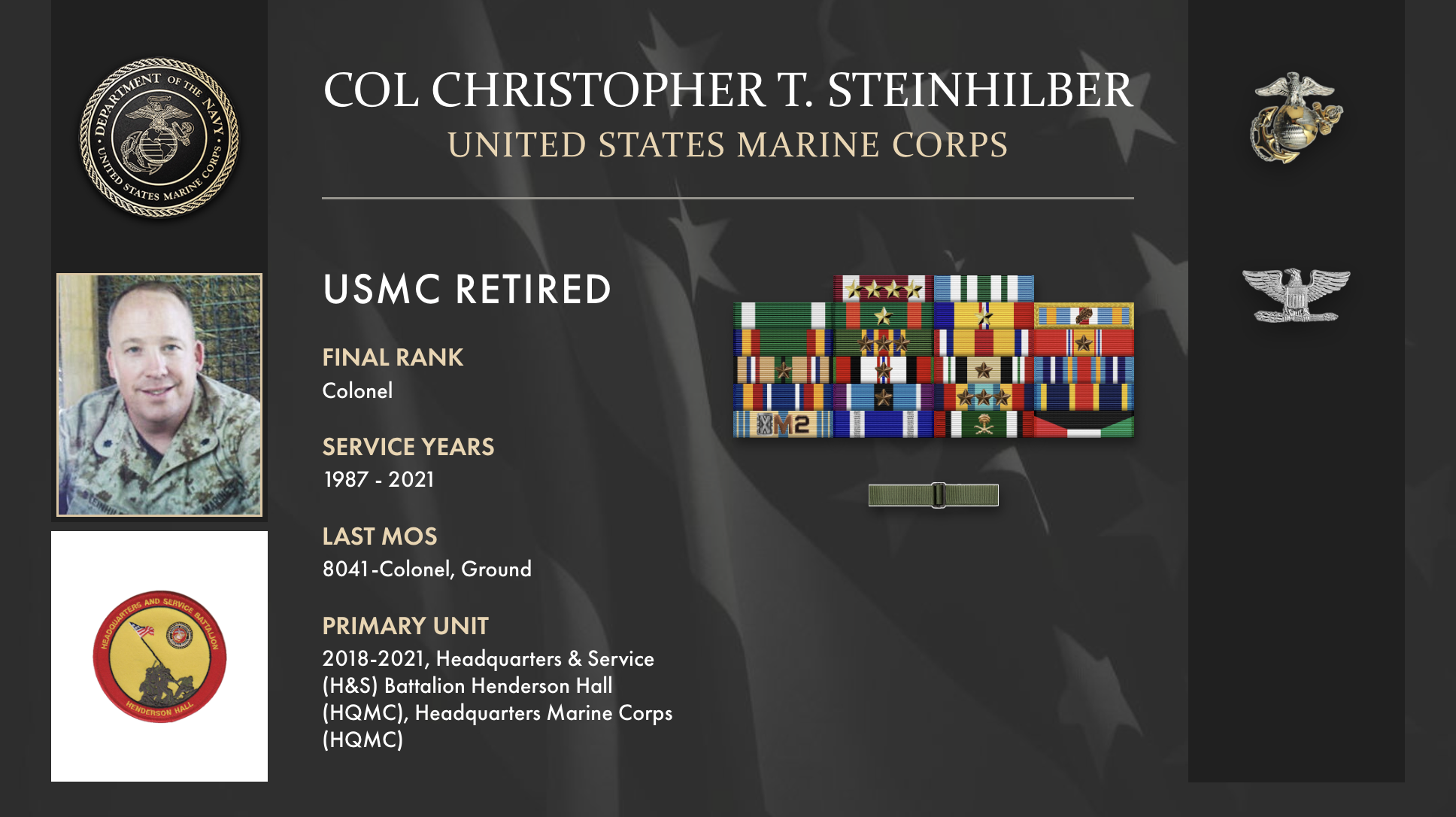 Service Reflections of Col Christopher Steinhilber, U.S. Marine Corps (1987-2021)