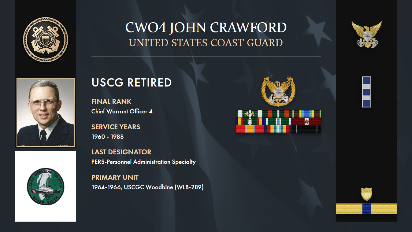 The following Reflections represents CWO4 John Crawford’s legacy of his military service from 1960 to 1988. If you are a Veteran, consider preserving a record of your own military service, including your memories and photographs, on Togetherweserved.com (TWS), the leading archive of living military history. The following Service Reflections is an easy-to-complete self-interview, located on your TWS Military Service Page, which enables you to remember key people and events from your military service and the impact they made on your life. Start recording your own Military Memories HERE.