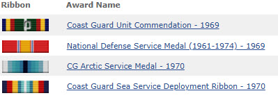 Tags: 82-foot patrol boats, Air Force, Anderson Air Force Base, Arctic Service Medal, Berlin Airlift, Coast Guard, Coast Guard Academy, Coast Guard Sea Service Ribbon, Coast Guard Unit Commendation Ribbon with O device, Cold War, Denver Regional Office., Guam National Wildlife Refuge, Klamath Basin National Wildlife Refuges, Klamath Falls Public Schools, Midway Atoll National Wildlife Refuge, National Audubon Society, Navy, Officer of the Deck, Seattle Fire Department, SS Manhattan, TogetherWeServed.com, U.S. Fish and Wildlife Service, USCGC Northwind, USCGC Staten Island, Vietnam War, Washington State University, WW II