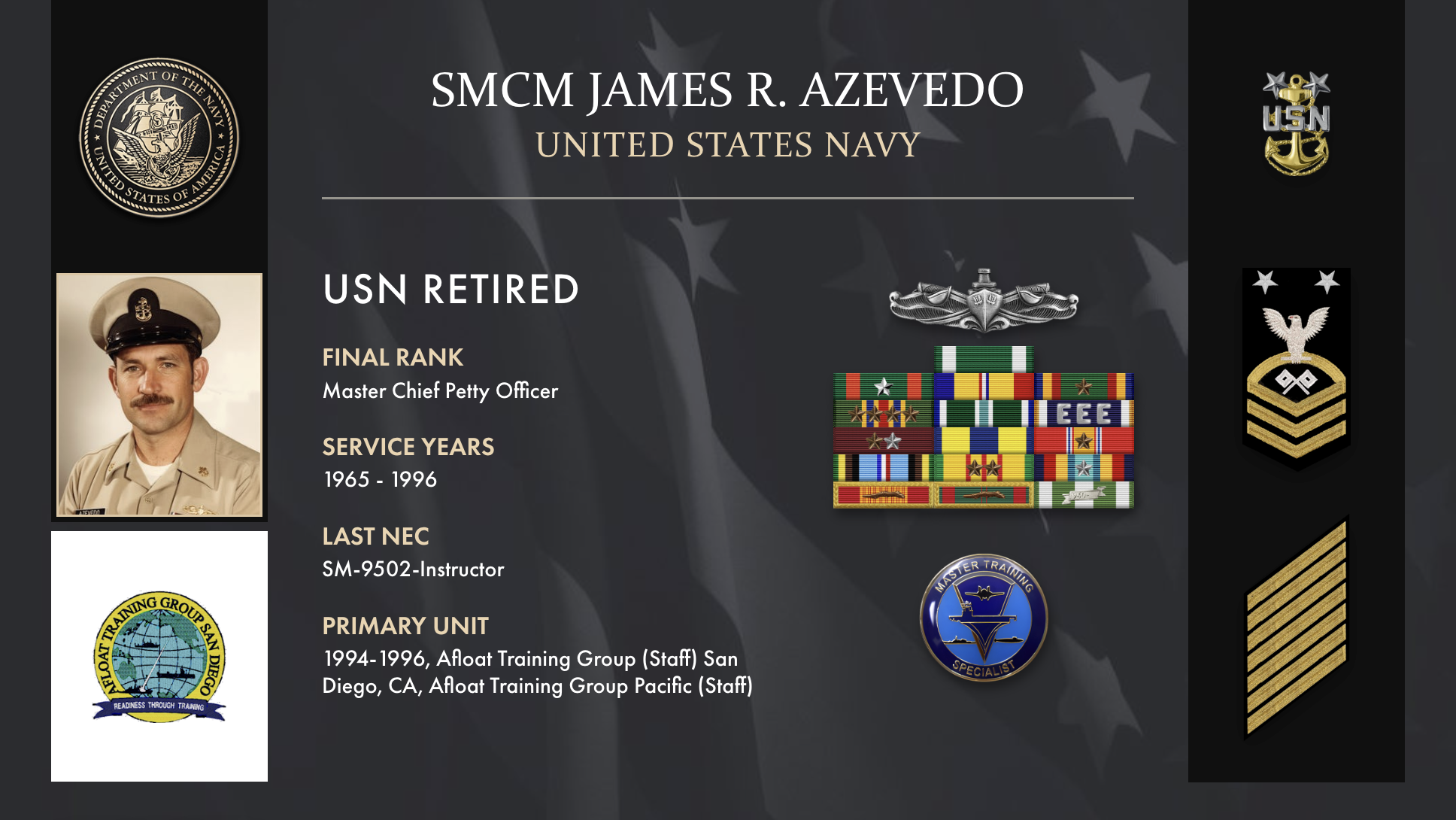 SM1(SW) Charles W. Davis was the individual who had the most impact on my career. Although I was his Chief on the USS VINCENNES, Charlie took on most of the duties associated with being the Leading Signalman, allowing me to take on other responsibilities, which I believe led to my selection to Senior Chief and ultimately, Master Chief. Charlie left the Navy after 8 years, but he and I remained close friends. He joined the Reserves, where he served in SBU-1 as a Special Warfare Combatant-craft crewman and moved on to MIUWU-106 as assistant training officer for harbor defense and was awarded the Navy Commendation Medal. Realizing that his chances of making CPO in the Reserves as a Signalman were slim, he changed his rating to Intelligence Specialist and returned to active duty. Shortly after doing so, it was discovered that Charlie had a virulent form of brain cancer, and he was medically retired.