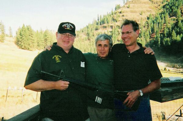 Thirty-six years after earning my beret and nickname, despite growing 4 inches taller, I was still a runt compared to classmates “Demo Dan” Courtney (left) and “Slim Jim” Day (right).